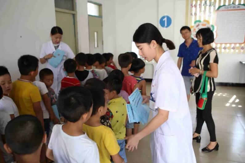 ▲為學(xué)生發(fā)放眼健康護(hù)照